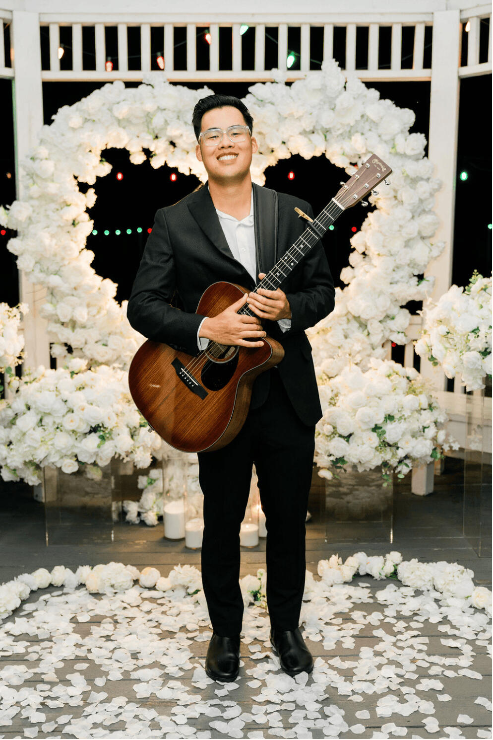 I stand among a small cohort of fingerstyle guitarists in the United States dedicated exclusively to weddings and private events. Before fingerstyle guitar became my main focus, I was a two-time Louisiana All-State Principal Cellist in consecutive years and a classically-trained pianist.No loops. No backing tracks. 100% live. My instrumental arrangements are all original arrangements—think your favorite songs re-imagined for one guitar, rich with melody, harmony, and bass lines simultaneously. I play my arrangements from memory while simultaneously engaging guests in conversation.I love learning new skills, meeting new people, and I get just as excited to perform now as I was when I was 7 years old. When I am not busy crafting new arrangements, I love playing tennis, searching for great deals, and binge-watching my favorite shows.